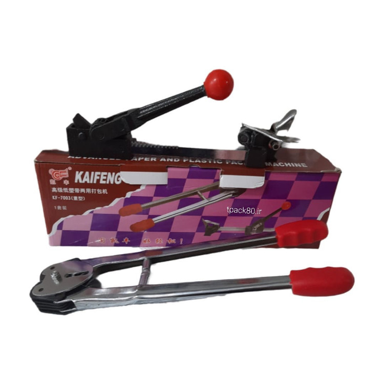 تسمهکش دستی Kaifeng قهوهای مناسب تسمه پلاستیکی PP سایز 16 میلیمتر، با بدنه مقاوم و طراحی ارگونومیک برای بستهبندی انواع کارتن و پالت. عملکرد روان، قیمت مناسب و دوام بالا. همراه با انبر و تسمه مخصوص.