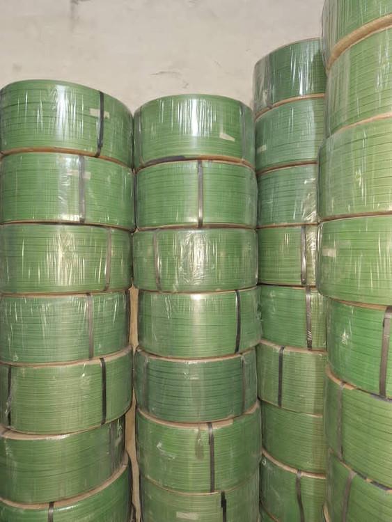 رنگ تسمه سبز هست ، برخلاف دیگر تسمه های پلاستیکی pp که طوسی هستند و یا دورنگ